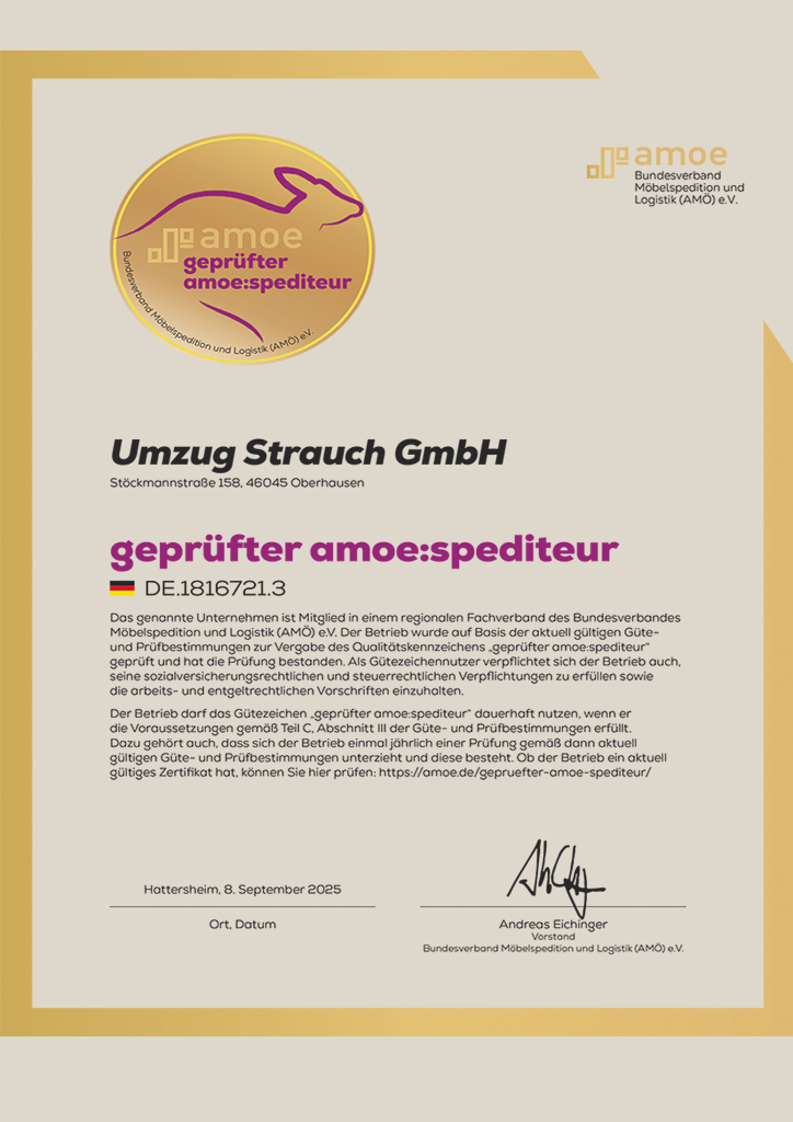 Für unsere Kunden stellt sich vor Auftragsvergabe die Frage, welcher Anbieter von Umzugsdienstleistungen denn nun wirklich das beste Preis-Leistungsverhältnis bietet. Um ihm diese Auswahl leichter zu gestalten und nachweisbare Argumente zu liefern, haben wir ein Qualitätsmanagementsystem in unserem Unternehmen eingeführt, welches wir tagtäglich leben. Das QM-System ist eine speziell für den Umzug von Privatpersonen entwickelte Norm, die sich an den Abläufen im Möbeltransportgewerbe und den Erwartungen des Kunden orientiert.